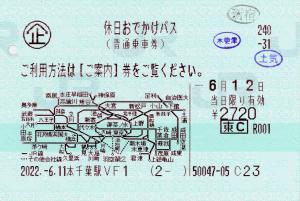 | 一般画面からの投稿(8074) 本千葉駅(千葉県/JR東日本) 本千葉駅VF1(MV50) ・ 2022/06/11 本券(企240-31:休日おでかけパス) 東C 85mmロール 下車印(新宿,木更津,土気) |