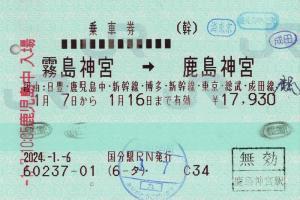 | 一般画面からの投稿(9655) 国分駅(鹿児島県/JR九州) 国分駅RN(MR52N) ・ 2024/01/06 片道 85mmロール 下車印(鹿児島中央,東京,成田,佐原) 無効印(鹿島神宮) |