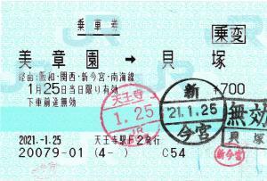 | 一般画面からの投稿(7942) 天王寺駅(大阪府/JR西日本) 天王寺駅F2(MR52) ・ 2021/01/25 片道 乗変 85mmロール 入鋏印(天王寺) 下車印(新今宮) 無効印 |