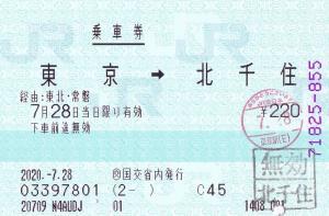 | 一般画面からの投稿(4197) JTB国土交通省内店(東京都/JTB) (交)国交省内(感熱旅行業端末) ・ 2020/07/28 片道 85mmプリカット 入鋏印(東京) 無効印(北千住) |