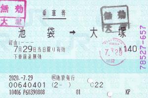 | 一般画面からの投稿(4208) 近畿日本ツーリスト池袋店(東京都/近畿日本ツーリスト) (KC)池袋(感熱旅行業端末) ・ 2020/07/29 片道 85mmプリカット 入鋏印(池袋) 無効印(大塚) |