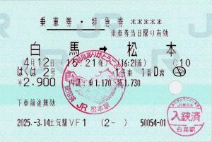 | きっぷアルバム(---/公開) 土気駅(千葉県/JR東日本) 土気駅VF1(MV50) ・ 2025/03/14 片道 特急券 列車1(はくば) 85mmロール 入鋏印(白馬) 乗車記念印(松本) |