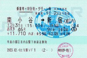 | きっぷアルバム(---/公開) 土気駅(千葉県/JR東日本) 土気駅VF1(MV50) ・ 2023/12/01 片道 特急券 グリーン 列車1(あずさ) 85mmロール 入鋏印(南小谷) 乗車記念印(新宿) |