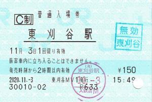 普通入場券 C制 85mmロール 入鋏印(東刈谷) 無効印(東刈谷)