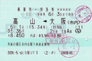 | きっぷアルバム(---/公開) 土気駅(千葉県/JR東日本) 土気駅VF1(MV50) ・ 2024/05/06 片道 特急券 列車1(ひだ) 85mmロール 入鋏印(高山) 乗車記念印(大阪) |