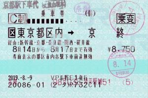 | 一般画面からの投稿(276) 北千住駅(東京都/JR東日本) 北千住駅VF2(MV50) ・ 2019/09/20 新幹線 特急券 列車1(のぞみ) C制 乗変 2日以内に変更 85mmロール 入鋏印(東京) |
