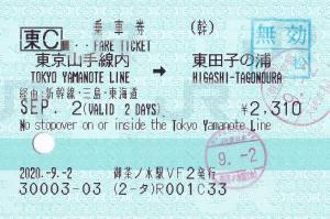 | 一般画面からの投稿(4514) 東京駅(東京都/JR東日本) 東京駅VF35(MV50) ・ 2020/09/02 片道 東C えきねっと/とれTEL 85mmロール 入鋏印(東京) 無効印(浜松) |