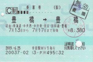 | 一般画面からの投稿(833) 幸田駅(愛知県/JR東海) 幸田駅MV1(MV50) ・ 2019/06/25 片道 C制 85mmロール 入鋏印(東京) 無効印(豊橋) |