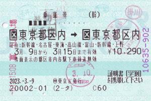 | 一般画面からの投稿(2842) 東京駅(東京都/JR東海) 東京駅MV834(MV50) ・ 2020/03/06 新幹線 特急券 列車1(のぞみ) C制 85mmロール 入鋏印(東京) 無効印(京都) |