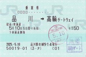 | 一般画面からの投稿(10816) 品川駅(東京都/JR東海) 品川駅改MR914(MR52) ・ 2025/05/10 片道 85mmロール 入鋏印(品川) 無効印(高輪ゲートウェイ) |