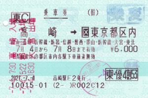 | 一般画面からの投稿(6691) 高崎駅(群馬県/JR東日本) 高崎駅E2(ME4) ・ 2021/07/04 片道 東C 東-優4割53 乗変 85mmロール 入鋏印(品川) |