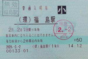| 一般画面からの投稿(2570) 福島駅(大阪府/JR西日本) (環)福島駅F1(MR52) ・ 2020/02/02 普通入場券 こども 85mmロール 入鋏印(福島) 無効印(福島) |