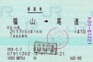 | 一般画面からの投稿(2217) JTB名古屋金山店(愛知県/JTB) (交)名古屋金山(感熱旅行業端末) ・ 2019/02/07 片道 85mmプリカット 入鋏印(福山) 乗車記念印 |