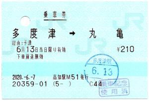 | 一般画面からの投稿(3711) 高知駅(高知県/JR四国) 高知駅M51(MR52) ・ 2020/06/07 片道 85mmロール 入鋏印(多度津) 乗車記念印 |