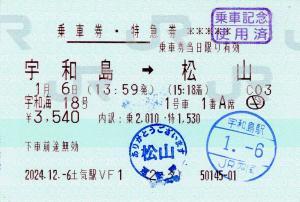 | きっぷアルバム(---/公開) 土気駅(千葉県/JR東日本) 土気駅VF1(MV50) ・ 2024/12/06 片道 特急券 列車1(宇和海) 85mmロール 入鋏印(宇和島) 乗車記念印(松山) |