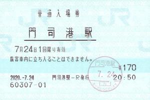 | 一般画面からの投稿(4139) 門司港駅(福岡県/JR九州) 門司港駅-R(MR52) ・ 2020/07/24 普通入場券 85mmロール 入鋏印(門司港) |