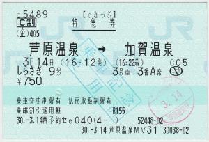 乗車記念印は加賀温泉駅のものです
