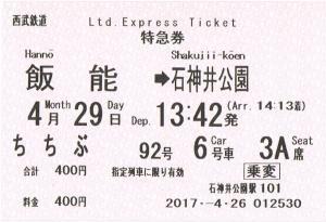 石神井公園駅101発行。改札窓口(特急券うりば)で購入したものになります。