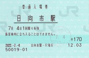 日向市駅みどりの窓口発行の入場券です。