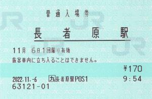 長者原駅改札付近みどりの窓口にて発行の入場券です。