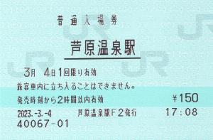 芦原温泉駅改札付近みどりの窓口にて発行の入場券です。
